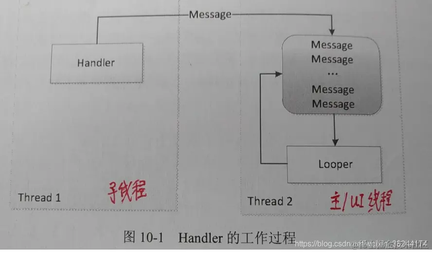 Handler的说明如下:有时候需要子线程去进行耗时I/O操作,譬如读取文件、访问网络。耗时操作完成后需要在UI上做一些改变,但我们并不能在子线程中更新UI,通过Handler可以更新UI操作并切换至主线程进行。