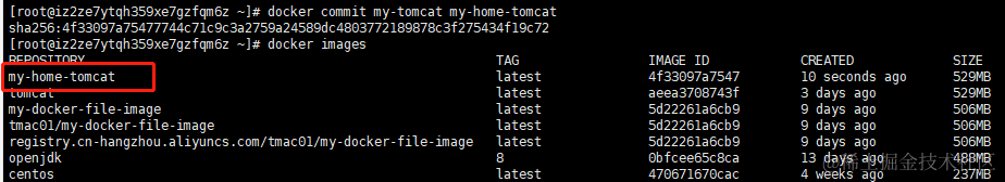 根据container生成image: docker commit my-tomcat my-home-tomcat