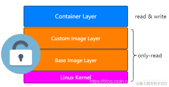 image其实是由一层一层的layer来组成的,最底层基于linux内核在上面加了一层一层的layer,从docker仓库pull的image是由Dockerfile来生成,这个image是只读的不可更改的,container是由images运行而来的,可以理解为container是在images层上又加了一层,只不过container层是可以进行读写的.