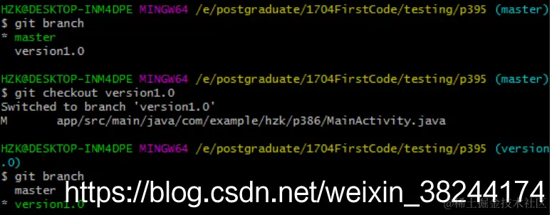 3.如何将代码切换至version1.0分支,随后进行检查。