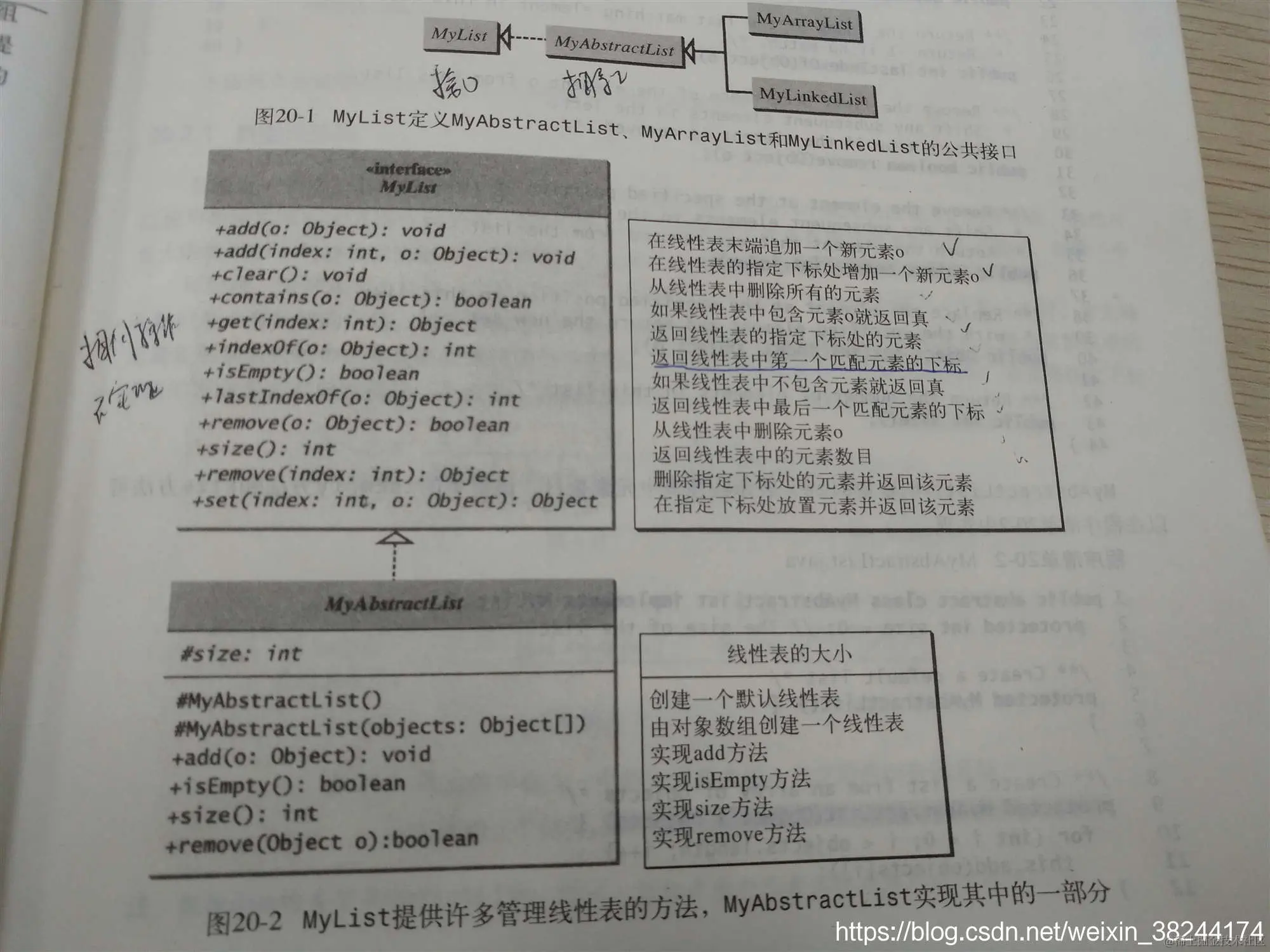 譬如书籍列表、城市列表等等。实现线性表有两种方法:(1)动态数组存储元素,超过数组容量,创建更大数组,将当前数据组元素复制到新建数组中。MyArrayList(2)链表结构,每个结点动态生成存储元素。MyLinkedList。相同操作采用接口或者抽象类生成。