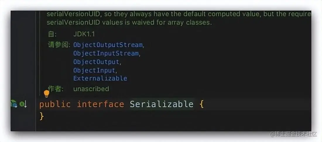 接口还有一个很常见的功能那就是标记功能,这么说可能你没有印象,但是提到序列化接口 java.io.Serializable; 你肯定知道,我们经常在对应的 POJO 中都会实现这个序列化接口,而这个序列化的接口如果看过源码的小伙伴肯定知道里面是没有内容的。