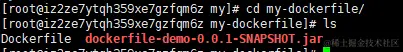 1.准备一个springboot项目,并且mvn clean package 生成jar包,代码如下,生成jar包为:dockerfile-demo-0.0.1-SNAPSHOT.jar