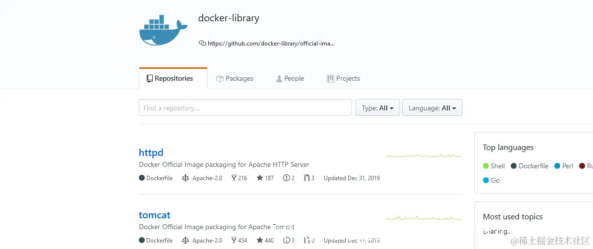 在GitHub上有一个仓库源(github.com/docker-libr…),在这个项目中可以找到tomcat相关