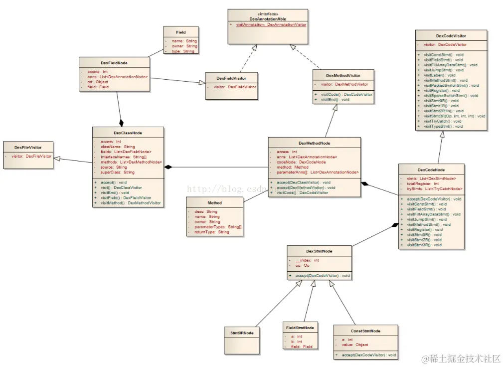 这里是dex文件解析之后转换为中间指令IR文件用到的visitor,前面的visitor是访问dex文件的。