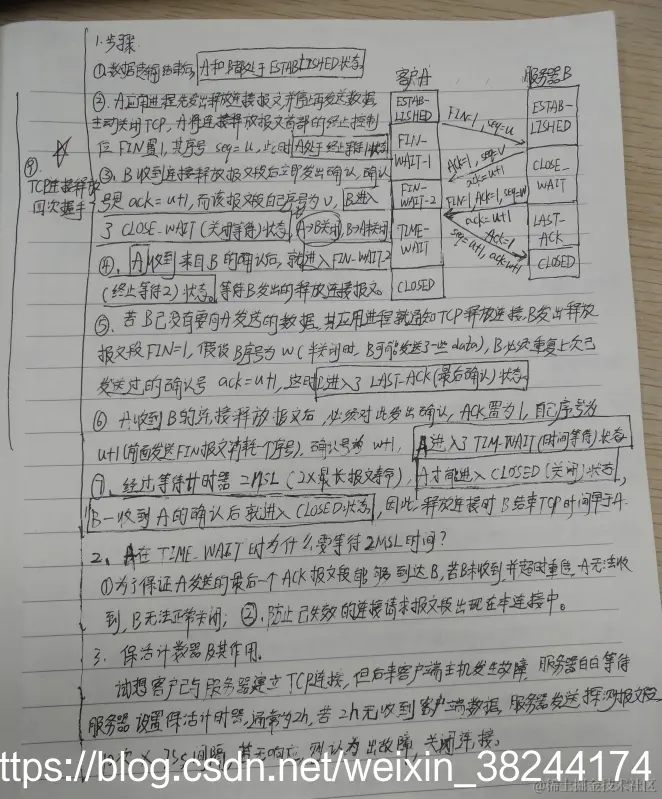 1.数据传输结束后,通信的双方都可以释放连接。现在A和B都处于ESTABLISHED状态。