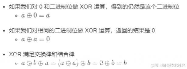 异或位运算。 题目给了那么多已知条件,为什么要.....这么不敏感?异或之后一样的数字都变为零了啊。只剩下唯一出现的那一个元素。我的提交执行用时已经战胜 99.77 % 的 java 提交记录。