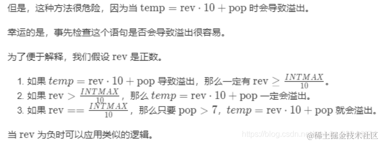 if(rev > Integer.MAX_VALUE / 10 || (rev == Integer.MAX_VALUE / 10 && pop > Integer.MAX_VALUE % 10)){