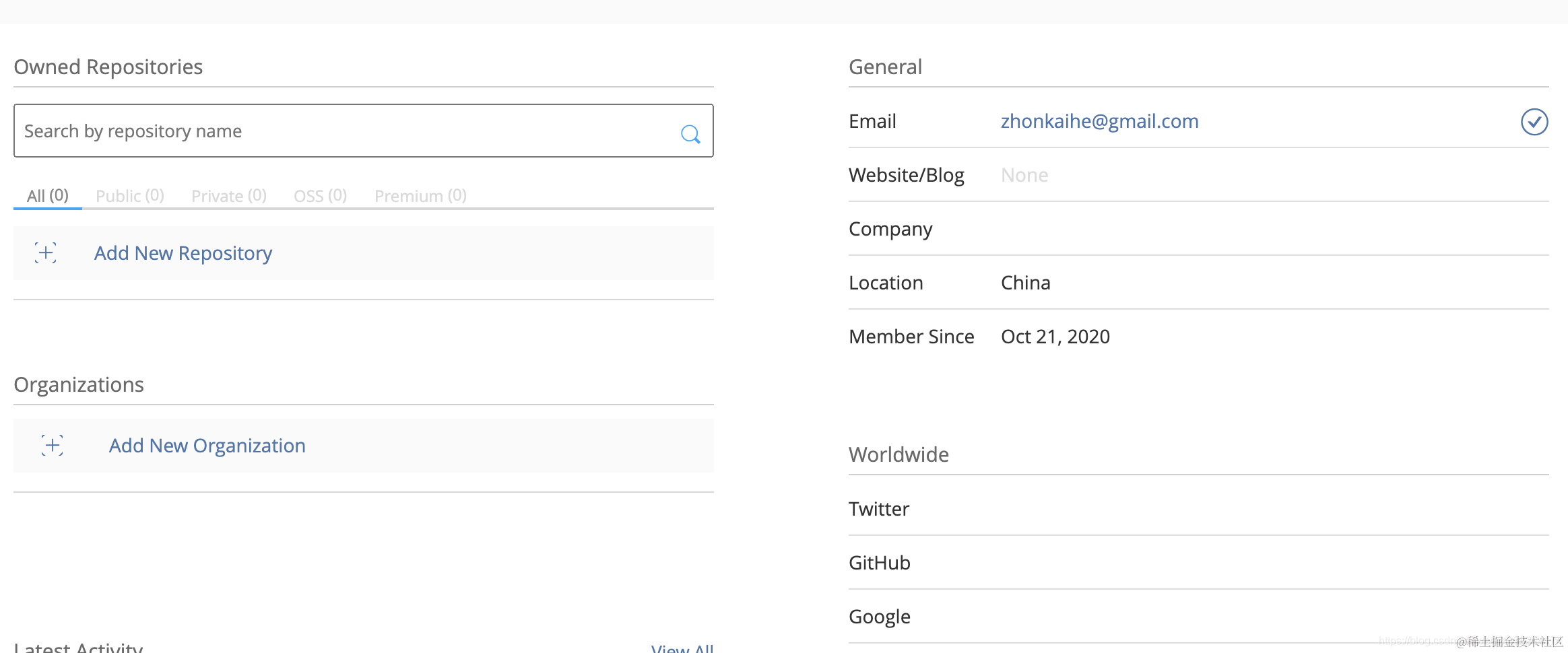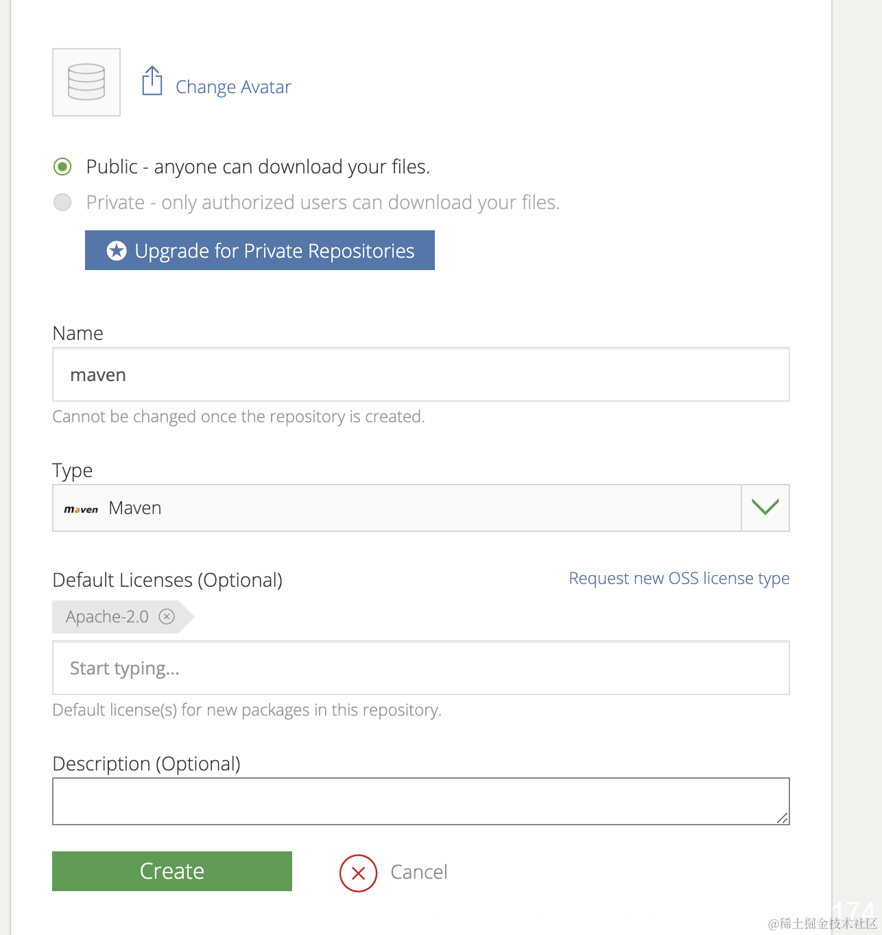 注册Bintray(专门提供软件分发服务、jcenter的发布与下载都由它提供,用gmail注册更简单), 注册成功了长这样。点击Add New Respository。填写后跳转至成功页。