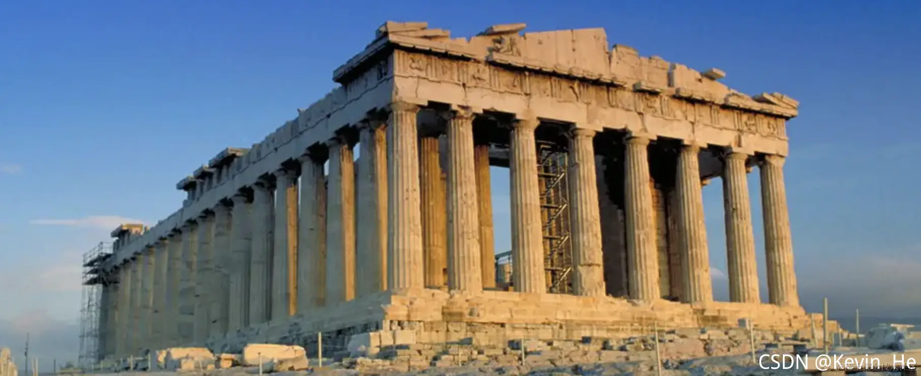 古希腊建筑最基本的理念是“协调”,协调具体体现在“比例”上,比例是数学概念,表示部分与部分、整体与整体的关系。柱式是古典建筑的根本,古希腊建筑有三种柱式,分别是多立克柱【特点是简洁、粗壮】、爱奥尼柱式【特点是纤细,左右旋转涡卷,形成盾剑装饰】和科林斯柱式【特点是纤细华丽和植物叶纹】。古希腊建筑的代表作是帕特农神庙。