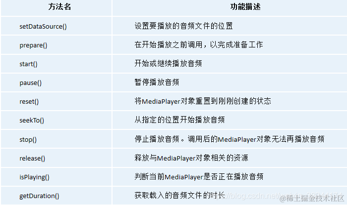 //调用openFd将音频文件句柄打开,做一次调用setDataSource设置要播放文件的位置、prepare完成初始化