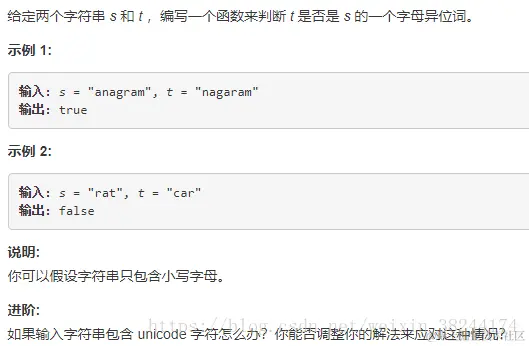 解题思路二:别人的方法:比我的快5倍。(1)建立两个数组,用于存放26个字符中每个元素出现的次数;(2)进行遍历,若a出现了5次,则sArr[1]=5;(3)判断两个数组每个位置是否相等。
