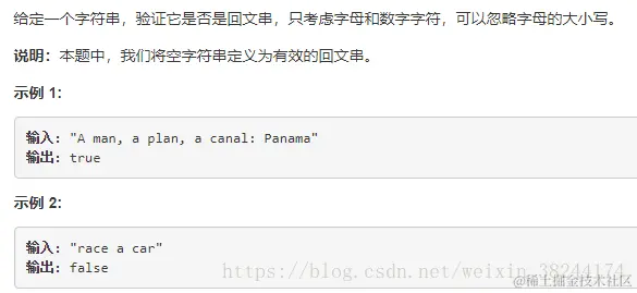 解题思路一:(1)建立新Arraylist数组,正向遍历,若为字母和数字,添加进去,形成新数组。(2)再正向遍历一遍,若arrayList_01.get(i)!=arrayList_01.get(arrayList_01.size()-1-i),则return false,只需要遍历下标到arrayList_01.size()/2即可。