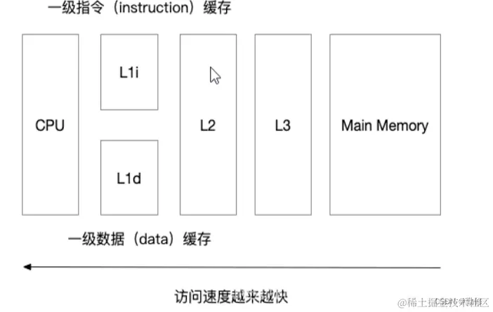 CPU和主存速度严重不对等。CPU读取会受到内存的限制。解决方案是加三层缓存,一级缓存又分为一级数据缓存和一级指令缓存。