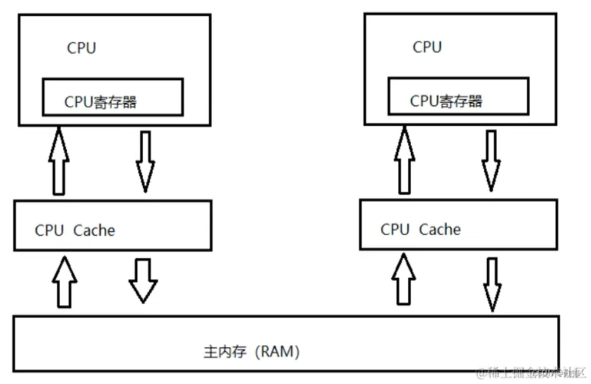 但存在缓存不一致问题:比如执行i++操作(int value = i+1; i=value),假设i初始值0,两个CPU执行预期应是2,但实际执行可能是1。