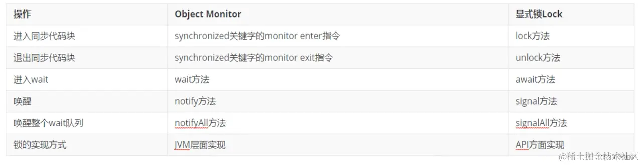 何为重入?当一个线程获取到锁后,同一个线程再次获取到锁时,也是可以进入的。Sychronized是可重入锁。Sychronized与ReentrantLock功能相同,但不同之处在于:Sychronized是从JVM层面进行锁的获取和释放,使用monitor enter和monitor exit命令。Lock是API显式获取和释放。