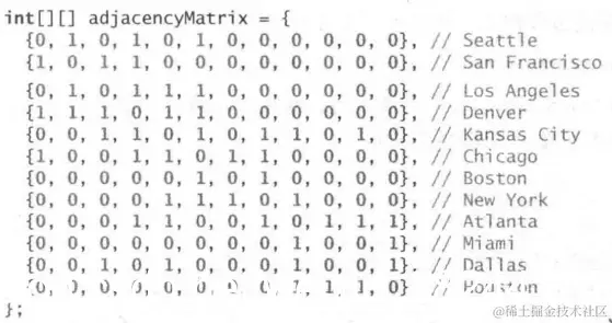 adjMat = new int[MAX_VERTS][MAX_VERTS];//邻接矩阵