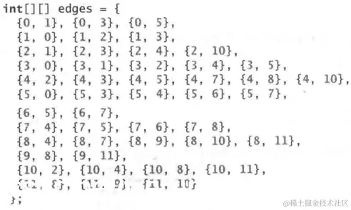 表示边的方法是将边定义为对象,存储于ArrayList中。Edge类定义如下。这种方法适用于事先不知道所有边的情况。但3.2和3.3存在的问题都是处理效率不高,后面将介绍邻接矩阵和邻接表形式的图。