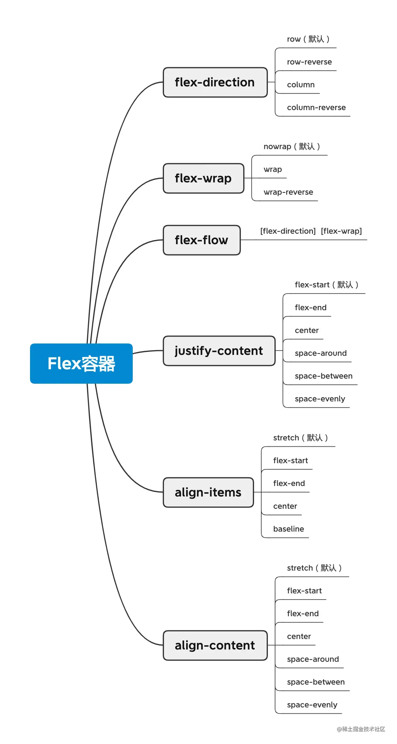 - flex-start(默认值):左对齐