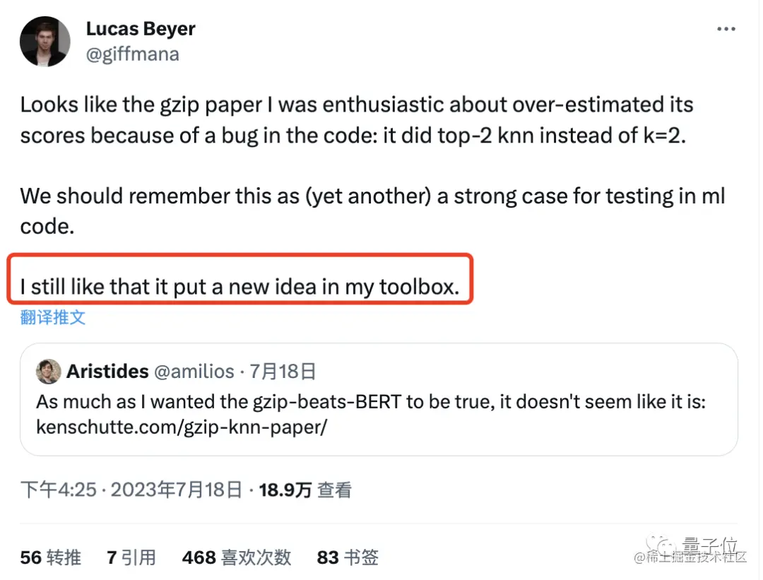 GoogleAI的研究员Lucas Beye也表达了类似的意思。