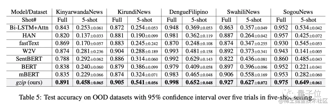 在7个分布内数据集上有6个结果与各类DNN相媲美,在分布外数据集上的结果则接连5把胜出,把BERT都给打败了。