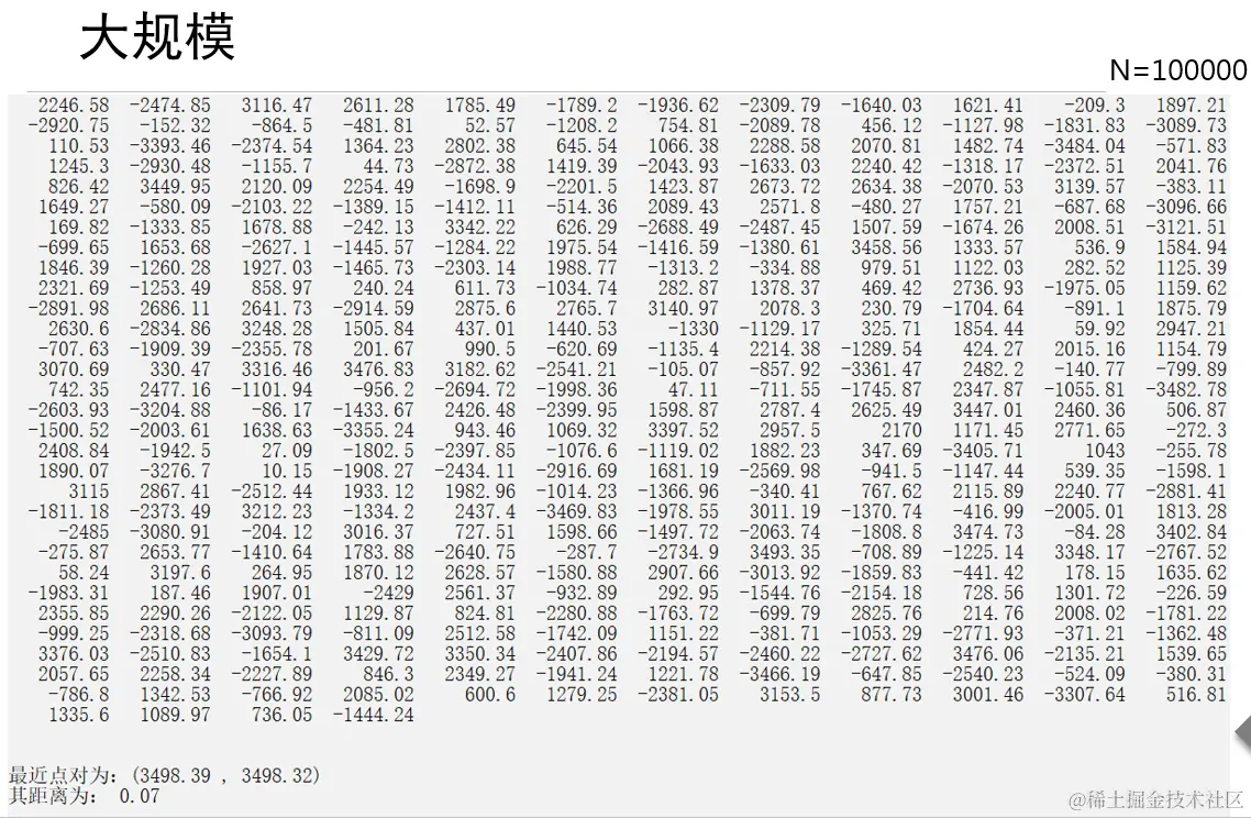 cout << "最近点对为:" << res.d1 << " " << res.d2 << endl;