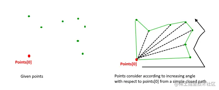 # 前半部分是出发点 ; 后半部分是经过按斜率排序之后的n-1个坐标点 注意: “+”是拼接的含义,不是数值相加