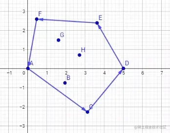 凸包(Convex Hull)是一个计算几何(图形学)中的概念。点集Q的凸包是指一个最小凸多边形,满足Q中的点或者在多边形边上或者在其内。