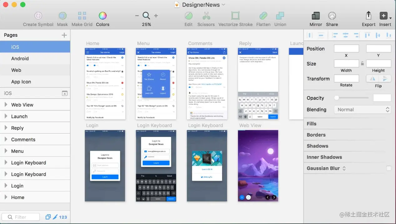 Sketch是一款在Mac端运行的矢量图原型设计工具,具有丰富的矢量设计工具和功能,可以创建精确的界面元素、图标、按钮等,使高保真原型图的视觉效果更加真实和精细。Sketch还支持各种第三方插件的使用,具有提供了丰富的功能扩展,例如添加交互动画、生成原型链接以及自动生成规范等。