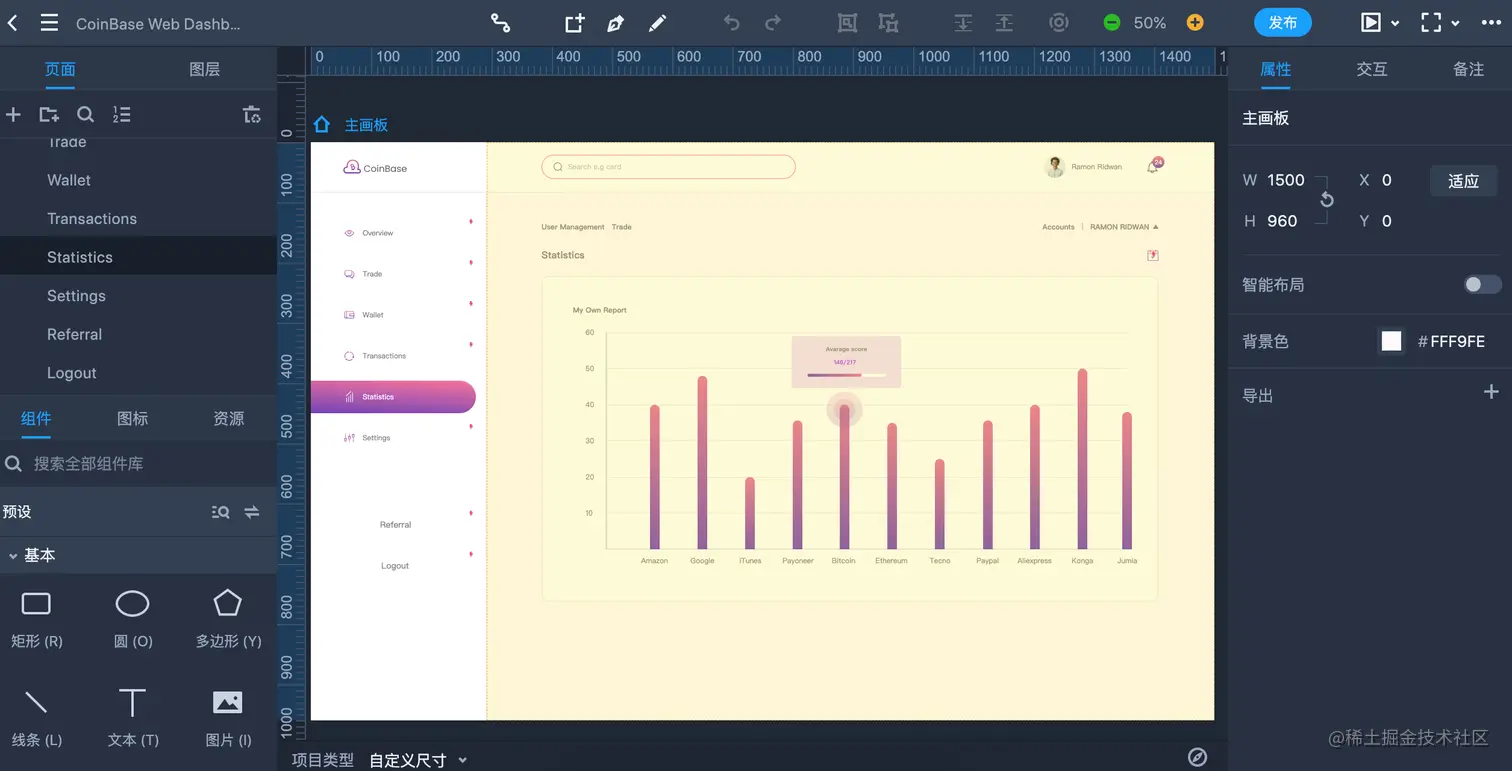 摹客RP是一款在线的网页和APP原型设计工具,功能强大,简单易上手,能快速构建交互式产品原型。摹客RP有大量的封装组件、第三方组件库资源和图标资源,通过拖拽即可画原型界面。此外,摹客RP交互能力强大,能制作页面级别以及组件级别的交互效果,轻松完成页面跳转等交互。