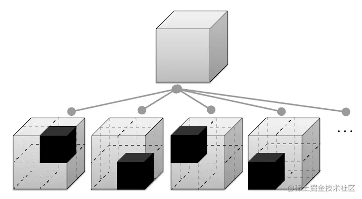 现在,你只要知道,3dTiles就是把空间进行切块,每个块叫做 “tile”,也即瓦片。至于怎么切的——待会介绍 tileset.json 时,会隆重介绍树结构。