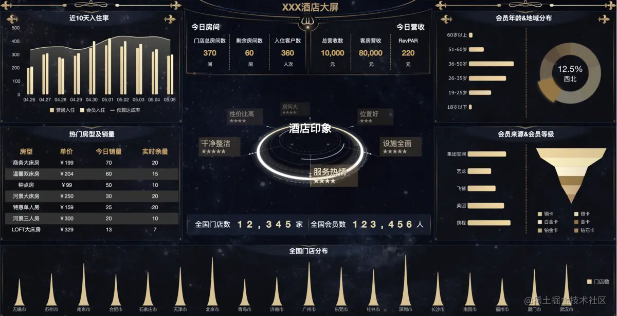 我一个亲戚,最近被领导要求做一个能展现当地城市相关信息的可视化大屏,可是把他愁得头发都没剩几根了。