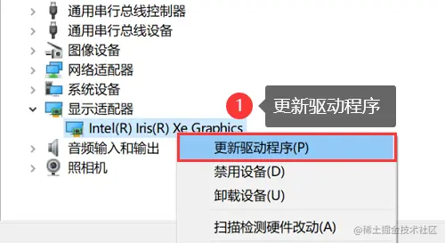 - 在界面中点击【设备管理器】,选择【显示适配器】,再点击【更新驱动程序】,等待更新完成再进行设置。