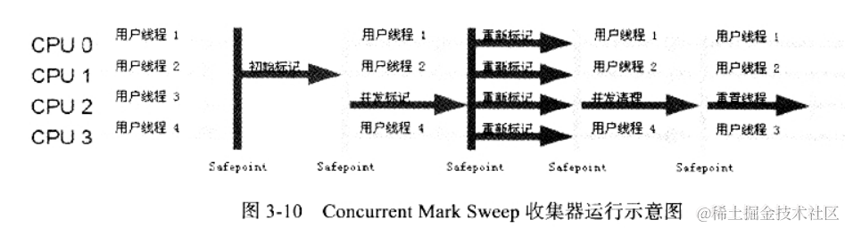 CMS(Concurrent Mark Sweep) 并发收集,低停顿,适合响应时间敏感的应用使用。