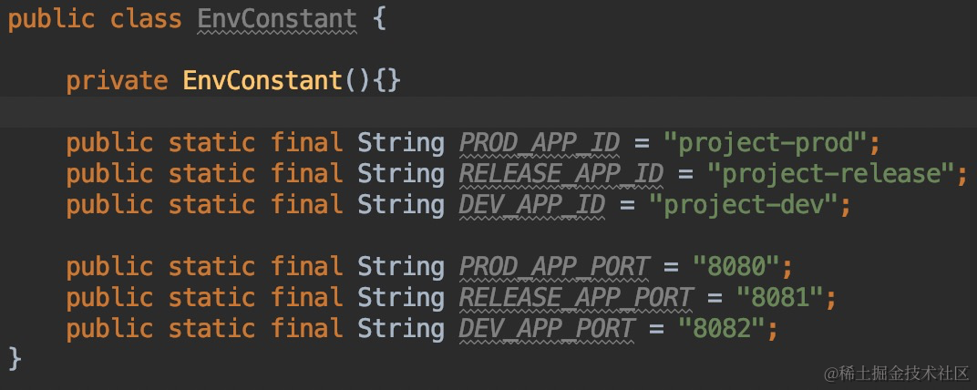 其实,很多情况下,枚举和常量可以替代使用,对于第二部分 EnvEnum 示例,我们可以定义常量类如下: