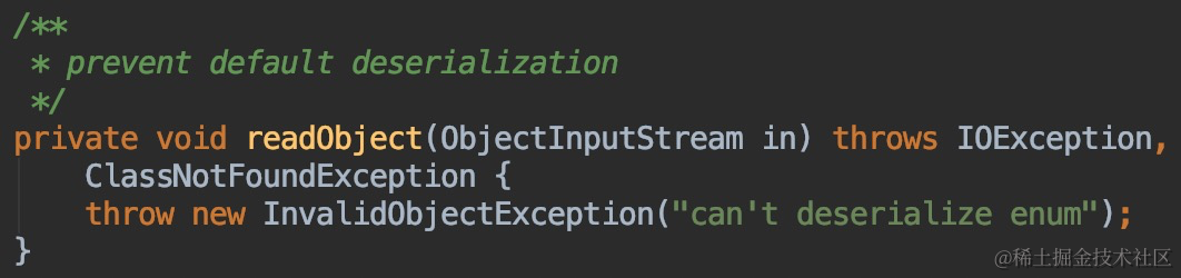 4、枚举类型clone方法定义为final,即不可复制,否则会抛出异常: