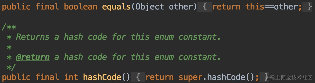 7、枚举类型equals定义为final,不可自定义覆盖,同关联hashCode方法。