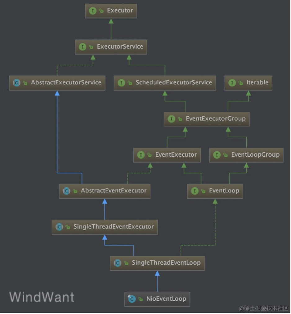 说它不仅仅是一个Netty线程,因为它实现了很多功能,我们可以看下它的继承图: