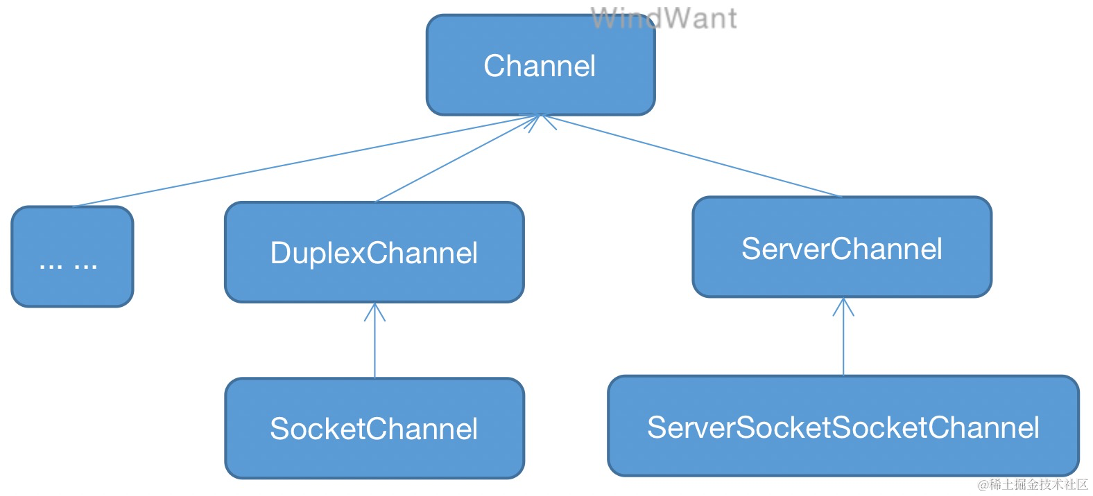 Channel是一个接口,而且是一个很大的接口,我们称之为“大而全”,囊括了server端及client端接口所需要的接口。