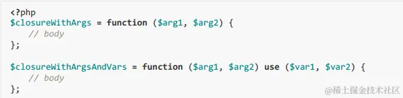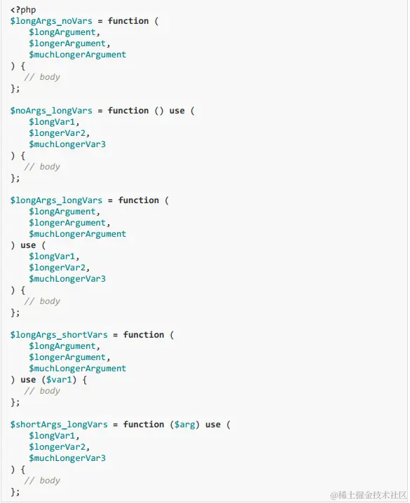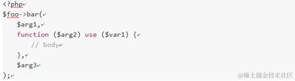 闭包声明时,关键词 function 后以及关键词 use 的前后都必须要有一个空格。