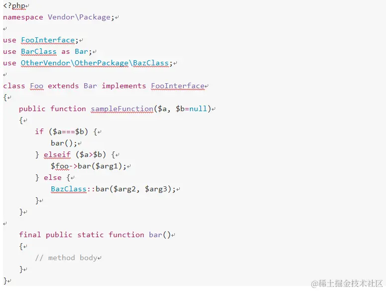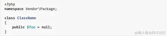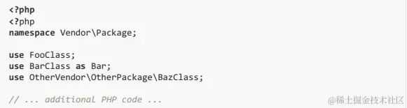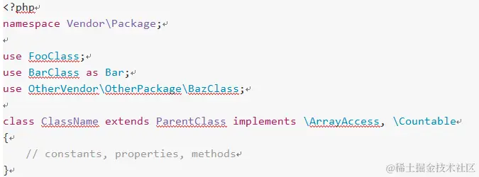 l 每个 namespace 命名空间声明语句和 use 声明语句块后面,必须插入一个空白行。