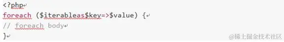 标准的 foreach 语句如下所示,注意其括号、空格以及花括号的位置。