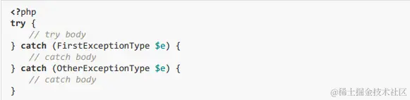 标准的 try catch 语句如下所示,注意其括号、空格以及花括号的位置。
