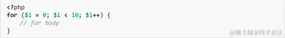 标准的 for 语句如下所示,注意其括号、空格以及花括号的位置。
