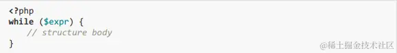 一个规范的 while 语句应该如下所示,注意其括号、空格以及花括号的位置。