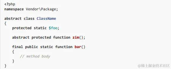 需要添加 abstract 或 final 声明时, 必须写在访问修饰符前,而 static 则必须写在其后。