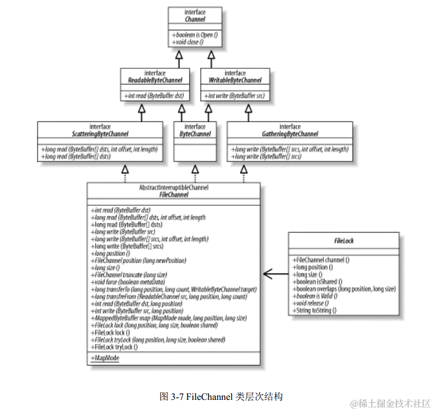 文件通道不能创建,只能通过(RandomAccessFile、FileInputStream、FileOutputStream)getChannel()获得,具有与File形同的访问权限。