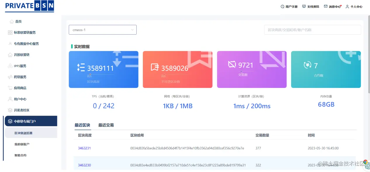(1)区块链浏览器:用户可在区块链浏览器,根据交易哈希、区块高度或用户名称查询区块业务基本信息及交易数据。