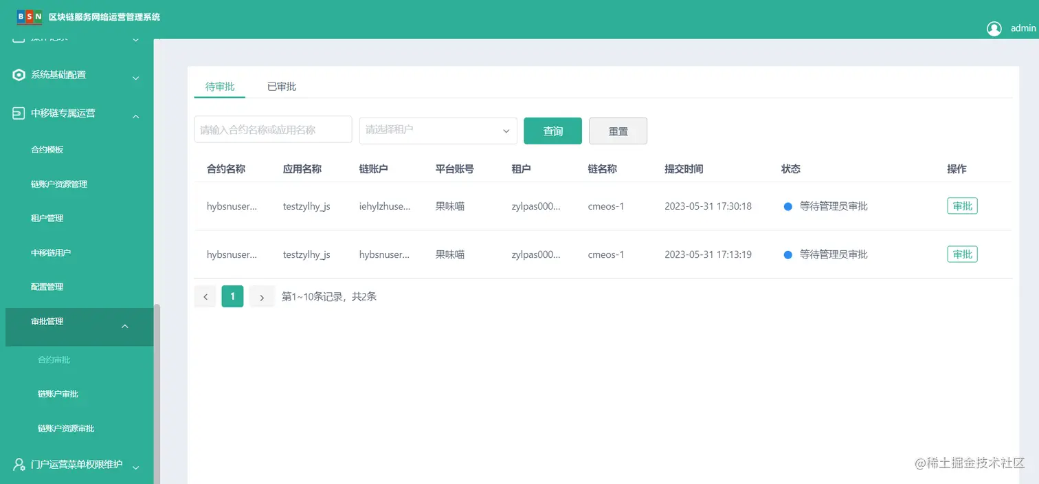 2、为创建良好的链上环境,基于BSN分布式云管运营平台建设“中移链专属运营”,对用户的上链业务进行审批管理,保障链上业务安全。