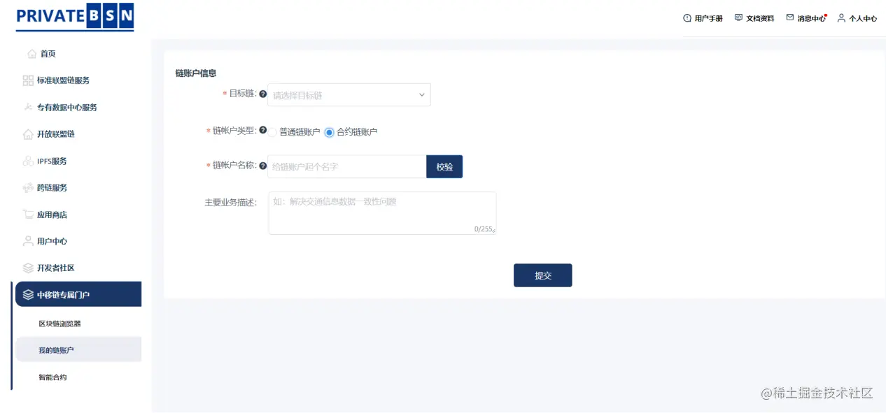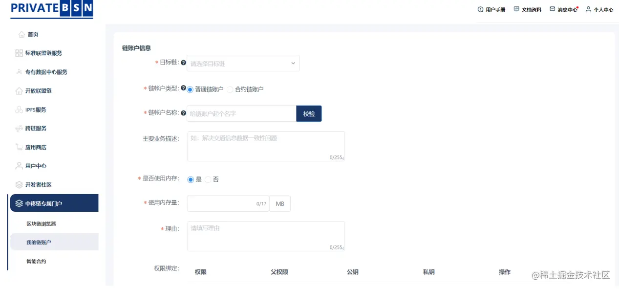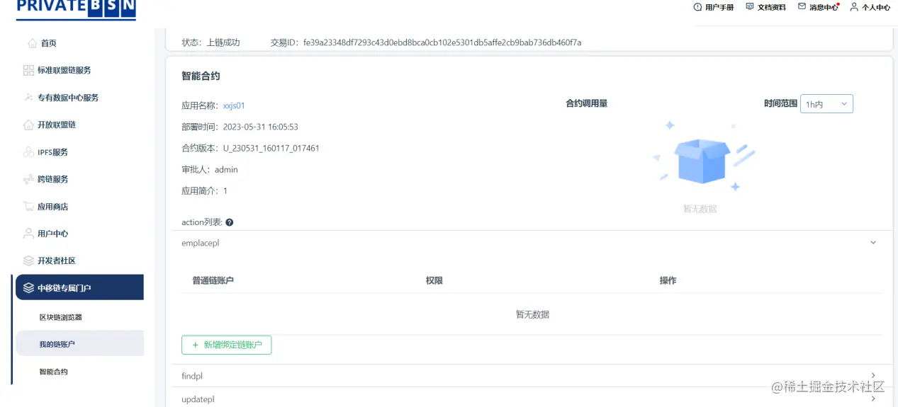 (2)更加丰富的功能支持:用户可以在门户上进行链账户、智能合约的创建、合约的部署、资源扩展、交易查看等操作。